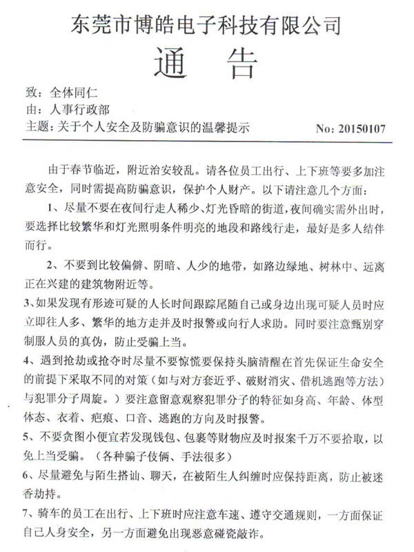事情就說(shuō)到這里,博皓電子硅膠制品廠希望通過(guò)這件事情提醒大家,防人之心不可無(wú),越是年底,小偷騙子越是猖獗,越是要提高警惕,切不可受眼前利益的蒙蔽而承受更大的損失。