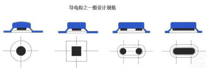 下面博皓硅膠制品廠給大家說說導電硅膠按鍵中導電粒的設(shè)計規(guī)格。通常根據(jù)形狀分為以下兩類: