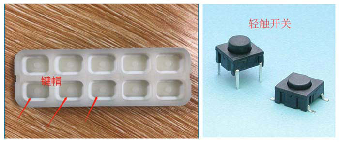 而大多數(shù)使用輕觸開(kāi)關(guān)的硅膠按鍵則主要起到一個(gè)鍵帽的作用。