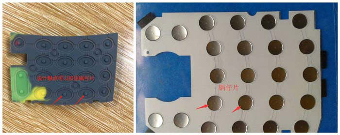 所以對(duì)于硅膠按鍵我們要先確定它的導(dǎo)電方式,是按鍵按下去的觸點(diǎn)直接和PCB板接觸還是通過(guò)鍋?zhàn)衅╩etel dome)或輕觸開(kāi)關(guān)(touch switch)來(lái)和PCB板連接。