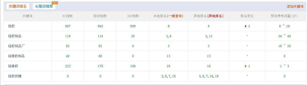 “硅膠制品、硅橡膠制品、硅膠制品廠、硅膠按鍵”是我們博皓核心產(chǎn)品關(guān)鍵詞,同時(shí)也是百度指數(shù)比較高的一些關(guān)鍵詞。說(shuō)到這里小編就額外說(shuō)一句,網(wǎng)站優(yōu)化的定位很重要,如果定位錯(cuò)了,后續(xù)再努力也是沒有辦法將權(quán)重提升至3的。