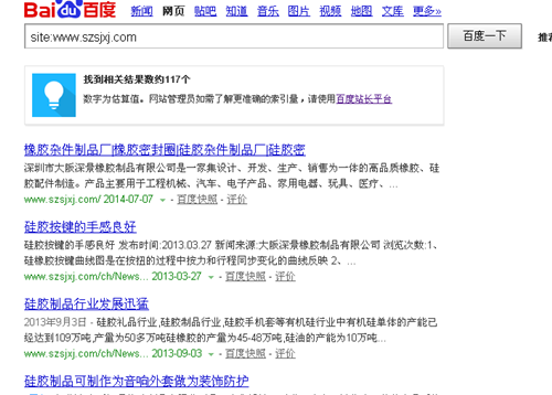 硅膠制品廠同行的百度收錄情況,收錄117條