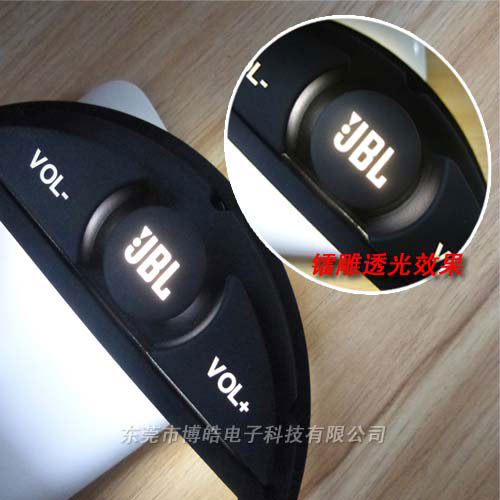 這款是用于某個(gè)知名品牌汽車音響上的硅膠按鍵,采用優(yōu)質(zhì)環(huán)保硅膠材料生產(chǎn),成型后產(chǎn)品表面依次經(jīng)過噴白油和噴黑油處理,后采用鐳雕工藝,達(dá)到高強(qiáng)度的透光效果。后進(jìn)行噴PU油墨處理,噴了PU的硅膠按鍵手感非常好,并且很耐磨。