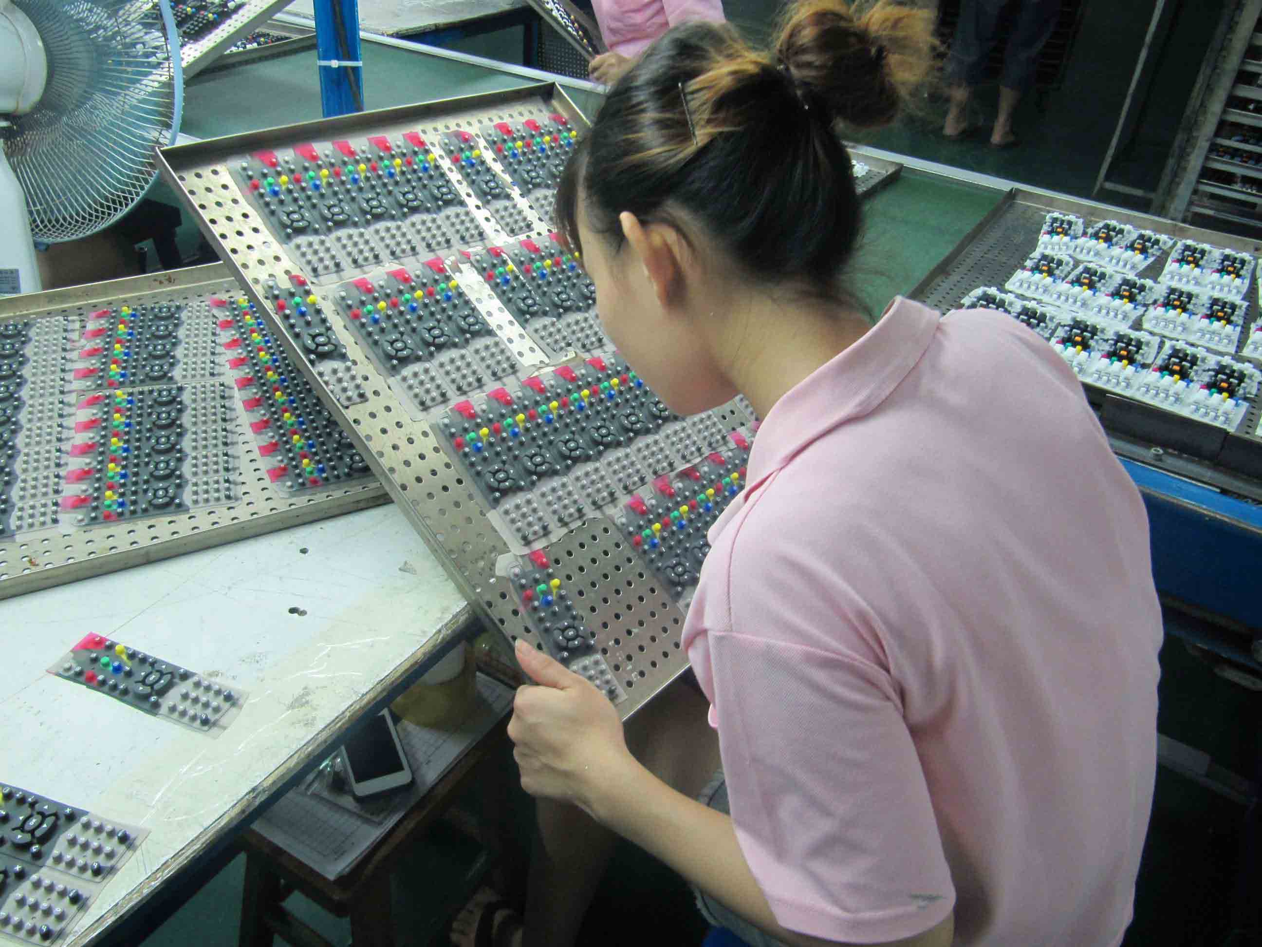 從絲印工藝要求講:一般現(xiàn)在的硅膠按鍵都是需要絲印四五種的顏色,每一種顏色都是需要經(jīng)過一次檢查和烘烤的。博皓電子在管控絲印品質(zhì)過程中增加一個FQC檢查崗位,在絲印完成后烘烤前會檢查員會把產(chǎn)生的不良挑選出來,并且擦拭干凈重新絲印。一般的小型工廠是不會增加這種檢查崗位的,這就是博皓電子能生產(chǎn)出品質(zhì)過關(guān)而且具備優(yōu)勢的性價(jià)比的硅膠制品的原因。