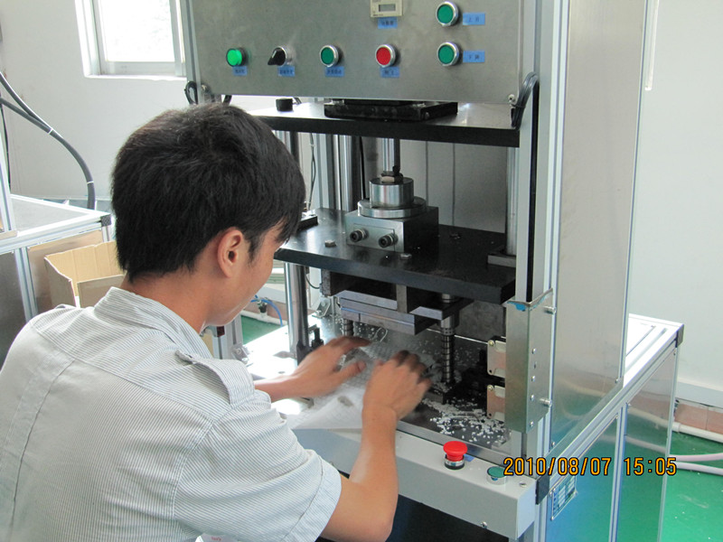 ④通過(guò)壓合機(jī)將塑膠鍵帽和硅膠內(nèi)襯按鍵裝配在一起。