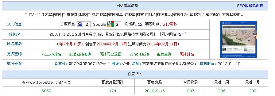 是一個(gè)比較大型的硅膠制品公司,我們博皓電子在業(yè)務(wù)方面也有何他們相互聯(lián)系的,網(wǎng)站的程序采用的是dedecms程序,權(quán)重都比較高,域名時(shí)間有8年多,網(wǎng)站優(yōu)化方面也做的比較好,缺點(diǎn)是網(wǎng)站的程序確實(shí)有很大的問題了,用戶體驗(yàn)很差,即使有好的排名,但是網(wǎng)站整體風(fēng)格和版面還是需要重新改版才有出路的!