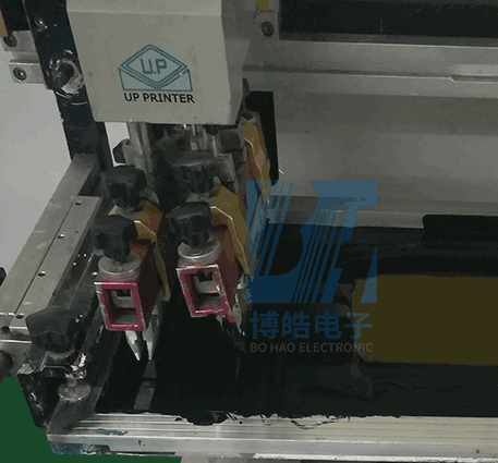 下面來(lái)到絲印部門,圖中是絲印黑色油墨,網(wǎng)版上是黑色的油墨,只需按一下開(kāi)關(guān),機(jī)器就會(huì)從左刷到右,硅膠按鍵完成一次字符印刷