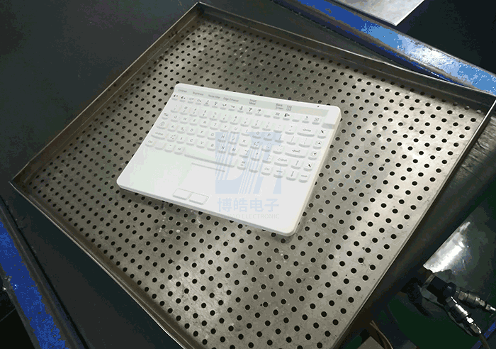 醫(yī)用硅膠鍵盤按鍵出紅外線烤箱后,需要進(jìn)行表面清理,準(zhǔn)備進(jìn)入下一道工序。