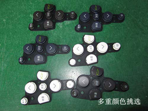 產(chǎn)品是出口日本的體重測量儀按鍵,主要是采用硅膠做成彈性襯托表面增加塑膠按鈕的一款P+R結(jié)構(gòu)設(shè)計(jì)特點(diǎn)。表面的塑膠鍵帽可以根據(jù)客戶的需求進(jìn)行顏色的調(diào)整,呈現(xiàn)多種多樣的硅膠制品外觀圖。