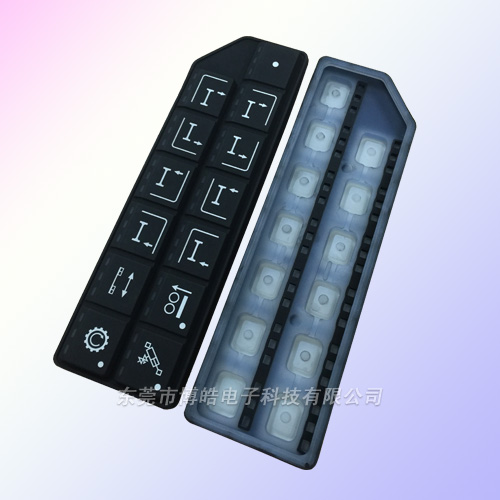 - 產(chǎn)品簡介:這是一款二次成型的硅膠控制器面板按鍵,采用噴涂鐳雕工藝,個(gè)別字符也是絲印工藝,后面以噴保護(hù)油而收尾。