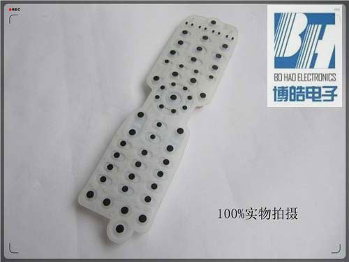 - 這是一款采用硅膠和熒光硅膠做的硅膠遙控器按鍵,產(chǎn)品圖中綠色部分即為熒光效果按鍵,另外還有個更獨特的浮雕效果按鍵,完全不用再印刷,憑手感就可以識別數(shù)字,該款硅膠遙控器按鍵反面還加有導(dǎo)電黑粒,可以起到導(dǎo)電效果。